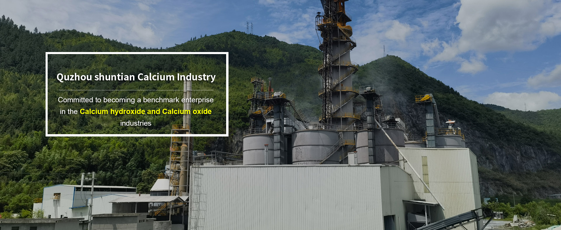 Quzhou Shuntian Calcium Industry Co ., Ltd. is located in the hometown of calcium carbonate in China----- Shangfang Town Industrial Functional Zone of Qujiang District in Quzhou City of Zhejiang Province. Founded in 2012, Shuntian is a national high-tech enterprise specializing in the research, development, production and sales of calcium hydroxide, environment-friendly special calcium, metallurgical lime (calcium oxide) and functional calcium products. As a large-scale industrial enterprise in Qujiang District, our company has won 2 special awards of district-leader of Qujiang District, and we are a million-tax-paying enterprise in Shangfang Town, a three-level enterprise of safety production standardization and a demonstration enterprise for the improvement and transformation and upgrading of the calcium industry in Shangfang Town.